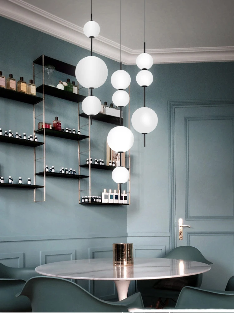 Скандинавская Минималистичная современная светодиодная люстра в виде шара для ресторана, оригинальная креативная кофейня, бара, спальни, стеклянная люстра