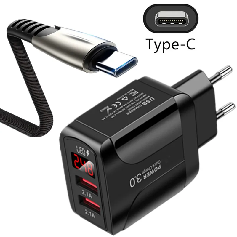 Быстрая зарядка 3,0, зарядное устройство USB со светодиодным диспле...