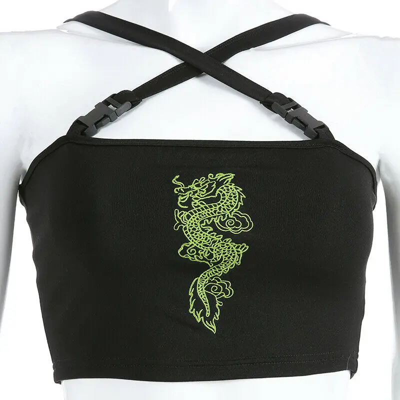 Вышивка в виде дракона; Топ-майка для женщин, китайский Стиль вечер...
