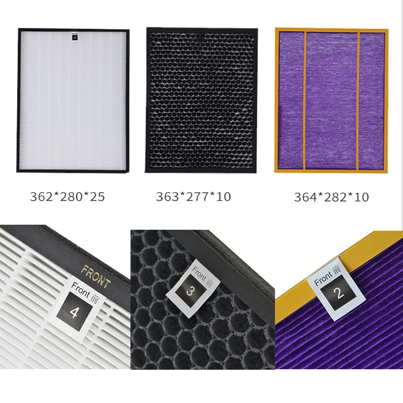 Размер:1. Размер фильтра формальдегида: 365 мм * 282 мм * 10 мм2. Размер фильтров с активированным углем: 365 мм * 280 мм * 10 мм3. Размер фильтра для сбора пыли HEPA: 365 мм * 277 мм * 25 мм