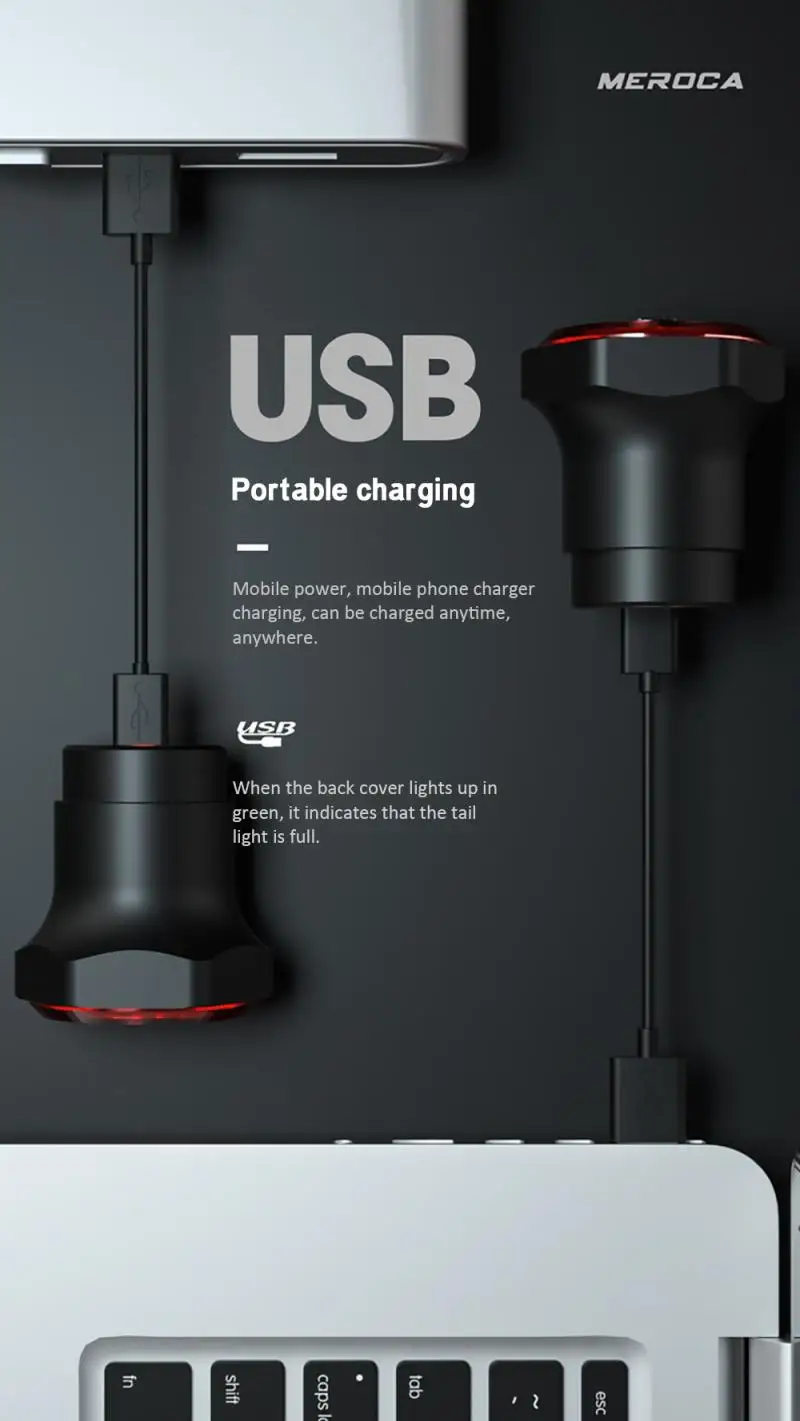 Задний светильник для велосипеда MEROCA, заряжаемый, водонепроницаемый, для ночной езды