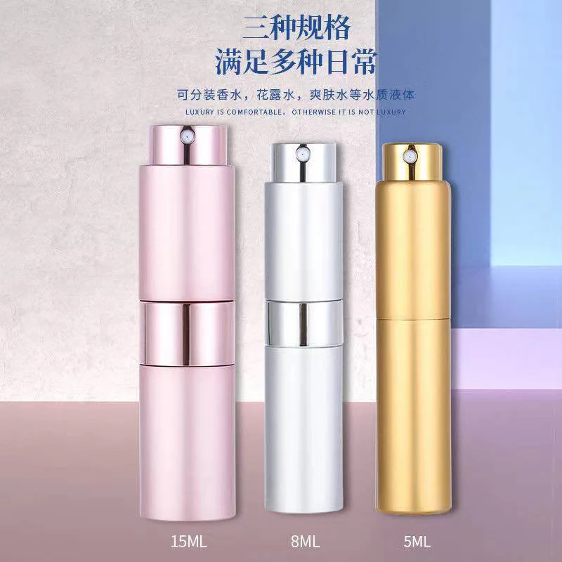 Металлическая алюминиевая стандартная косметическая бутылка-Распылитель 8 мл, 15 мл, 20 мл, портативная пустая бутылка для путешествий, Подставка под бутылку, стекло
