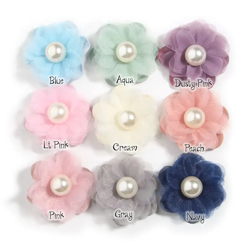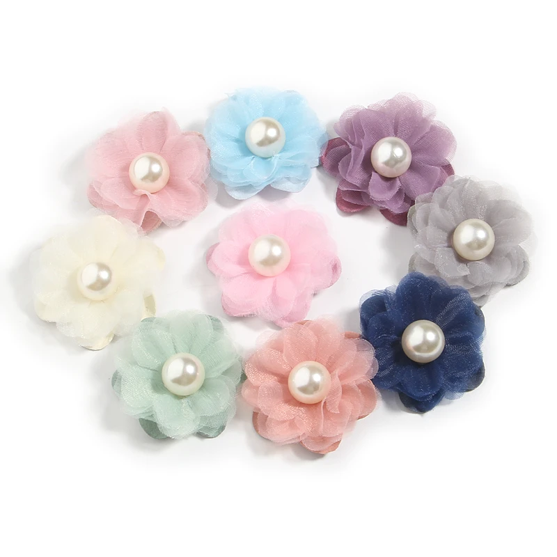 120 шт. 4,2 см 1,6 "в виде сердца мини-платье шифон ткань с цветочным принтом, имитация жемчуга, для плетения браслетов лента для волос невесты с цветочным узором; С лацканами свадебного букета, аксессуары для волос
