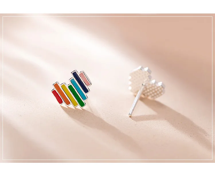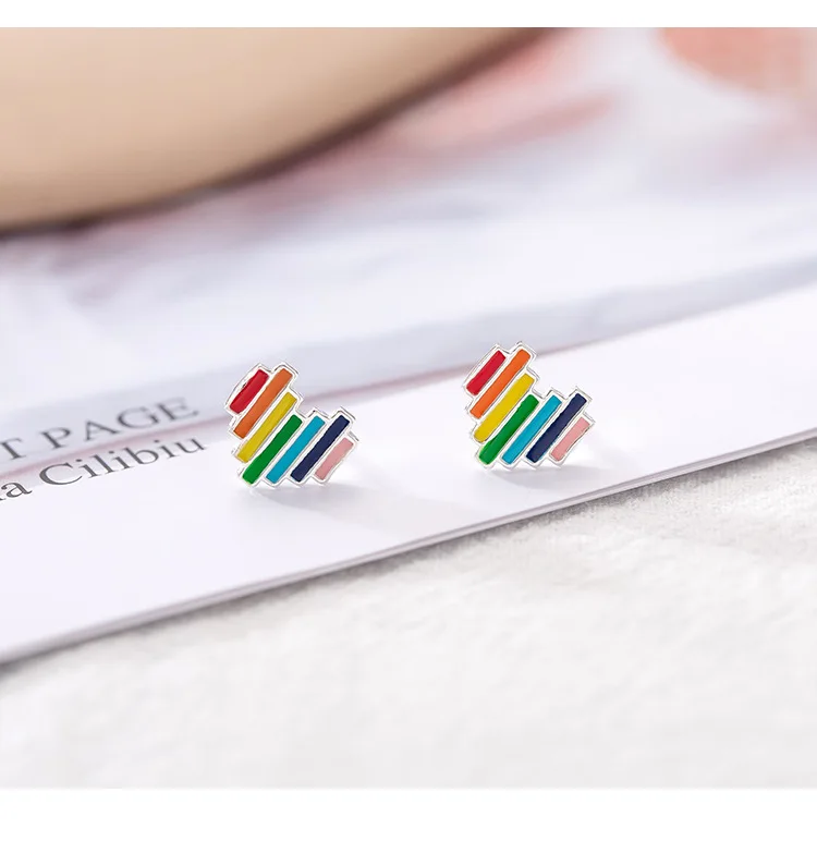 Серьги-гвоздики женские, цветные украшения в форме сердца, из серебра 2021 пробы