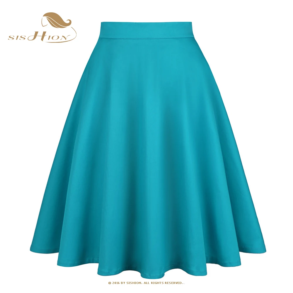 Женская винтажная юбка SISHION, голубая хлопковая однотонная летняя юбка в стиле 50-60-х, Y2K, VD0020