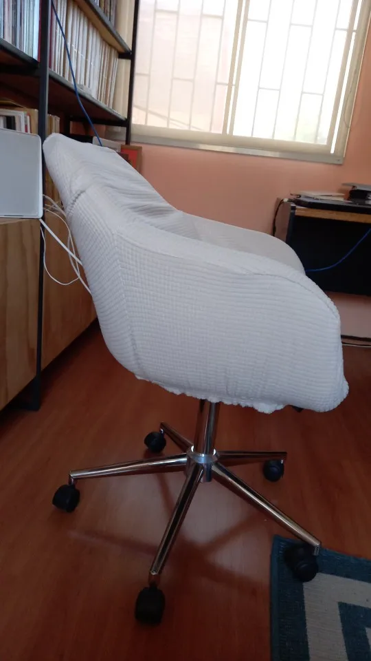 Товар прибыл через 10 дней, как описано, ткань, кажется, хорошего качества, идеально подходит к стулу, единственным недостатком является то, что пена белая, а для темных чехлов они выглядят слишком много