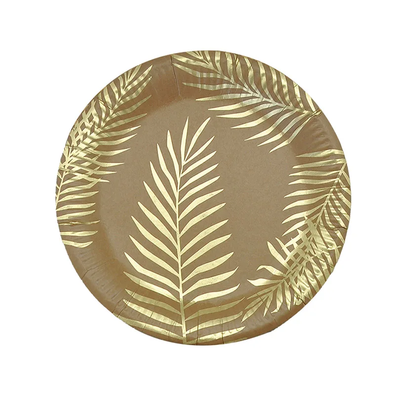 Наборы Посуды Из крафтовой золотой фольги одноразовая из пальмовых листьев, 32 шт., 8 гостей, салфетки для стаканчиков, для дня рождения, свадьбы