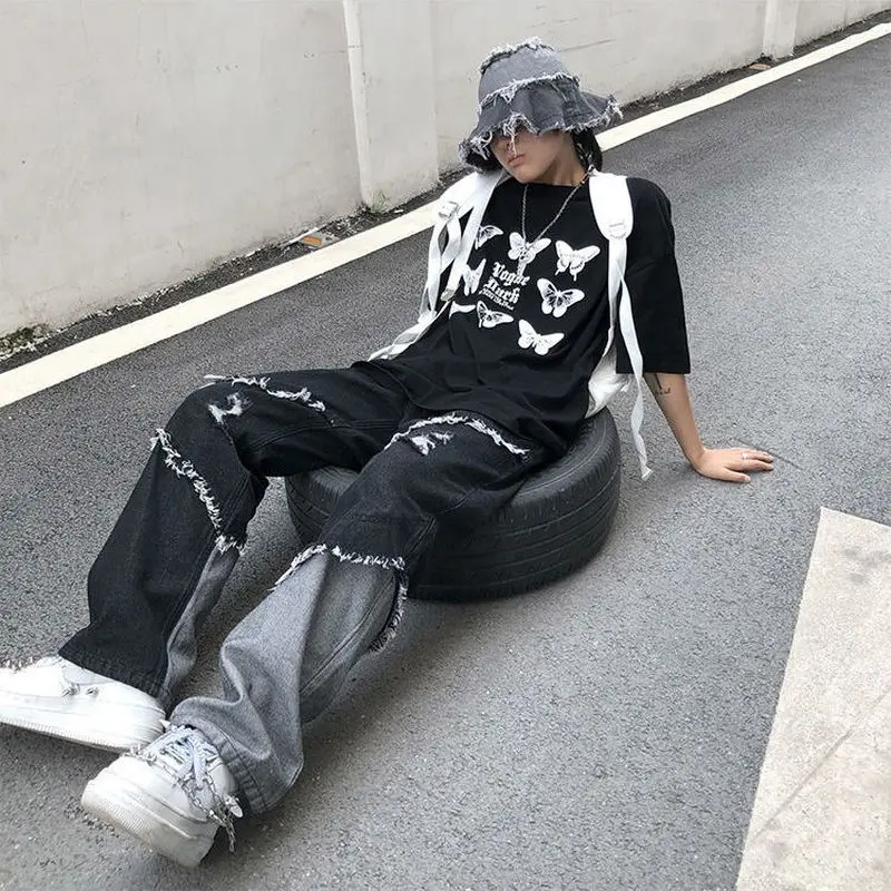 Джинсы мужскиеженские в стиле панк, свободные прямые джинсы в стиле...