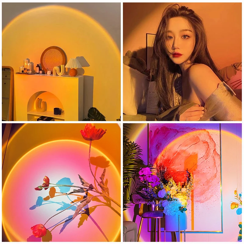 Светодиодный проектор заката, напольный ночник, Радужный художественный Настенный декор, проекционная лампа с USB, закат, красная атмосфера, украшение комнаты, свет s
