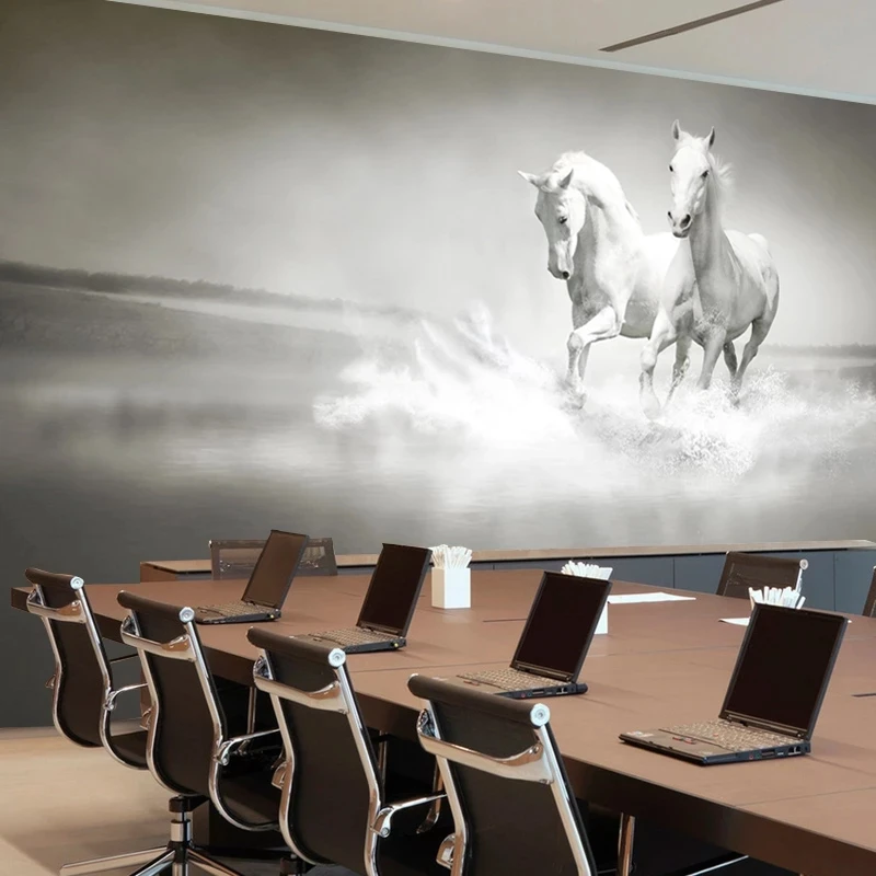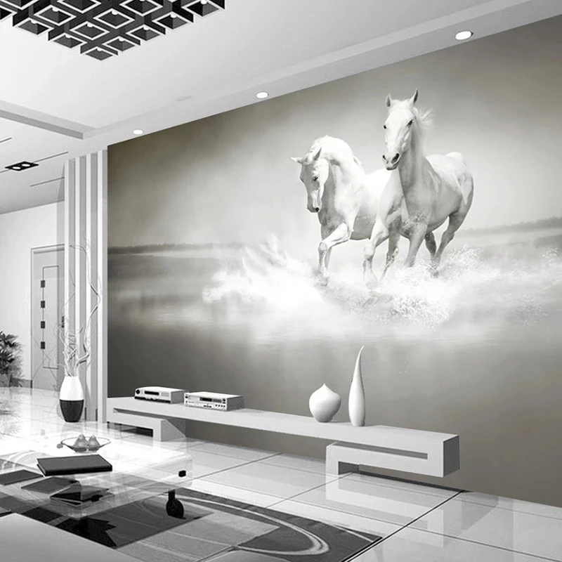 Фотообои на заказ, размер под фото, современное искусство, 3D Фреска с бегущей белой лошадью, для спальни, гостиной, офиса, нетканые самоклеящиеся обои