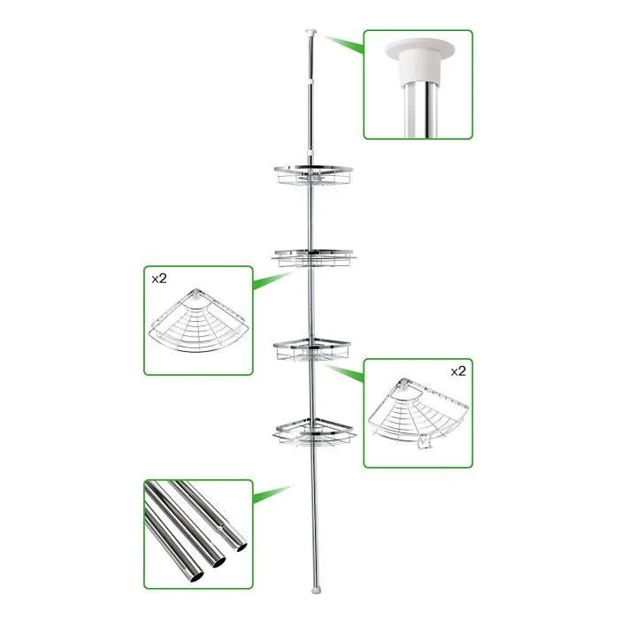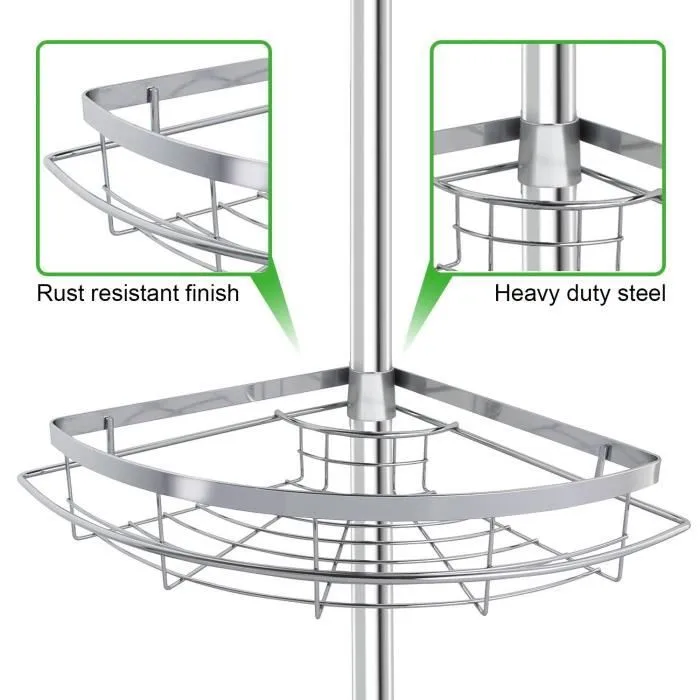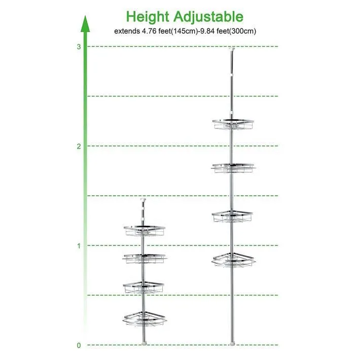 Характеристики продукта: стоя в вертикальном положении, высота может быть скорректирована в соответствии с потребностями. Не нужно устанавливать, не нужно пробивать. Большая емкость, максимальная несущая способность металлического сетчатого диска составляет 10 кг, без деформации или падения, сетчатый диск изготовлен из высококачественной нержавеющей стали; его можно использовать в таких местах, как кухни, ванные комнаты и т. д.
