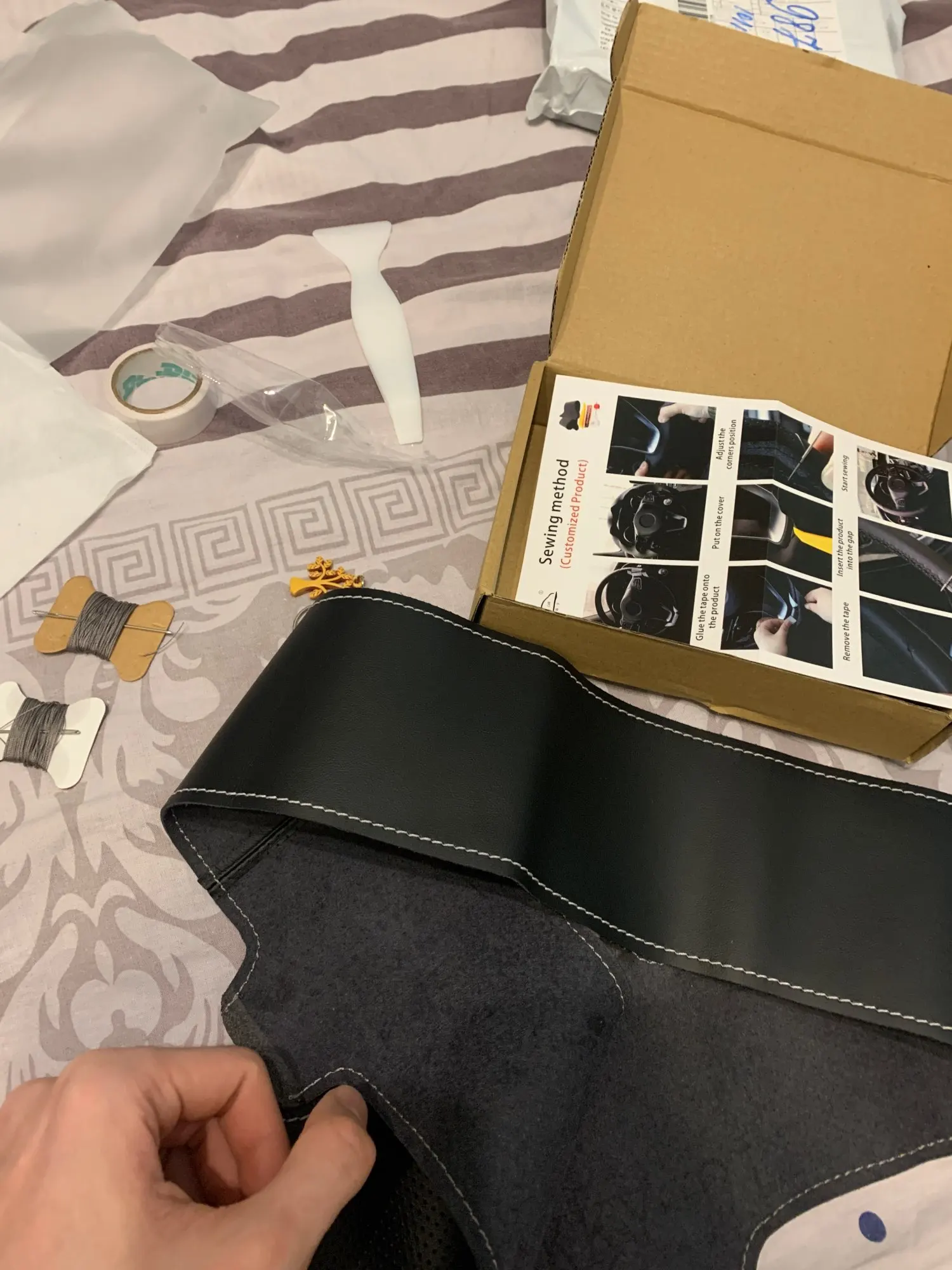 Качество отличное. Заказ приехал в Пермь примерно дней за 10 точно не скажу. Час времени и руль, как новый. Продавец положил 2 упаковки ниток и две иглы, с учетов косяков моих, хватило одной упаковки ниток, кожа отличная и в подарок положил брелок. Спасибо)