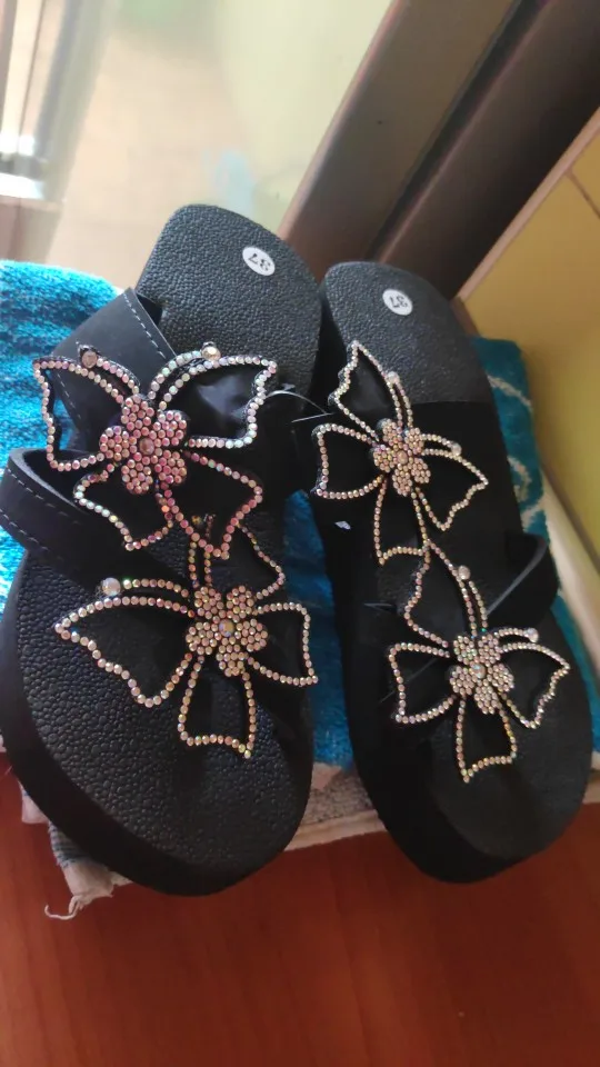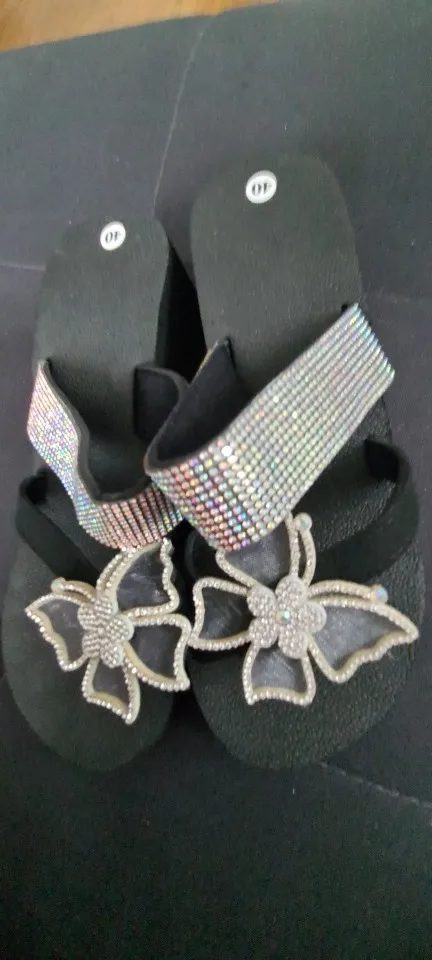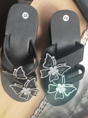 шлепки красивые, стразы все на месте, только немного липнут, или клей не высох или стразы на липком силиконе пока не поняла, дальше будет видно, размер соответствует размерам в таблице (см), но на свой 38, пришел 39 впритык, если у вас половинка, берите на размер больше