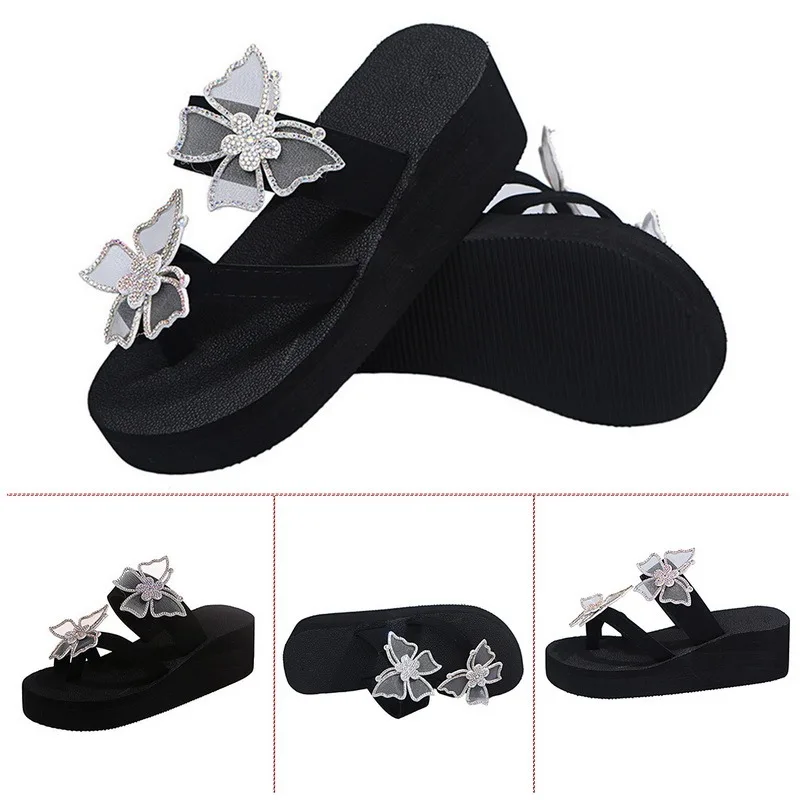 Женские сандалии, летние шлепанцы, туфли-бабочки со стразами, с открытым носком, удобная элегантная обувь на платформе, 2021
