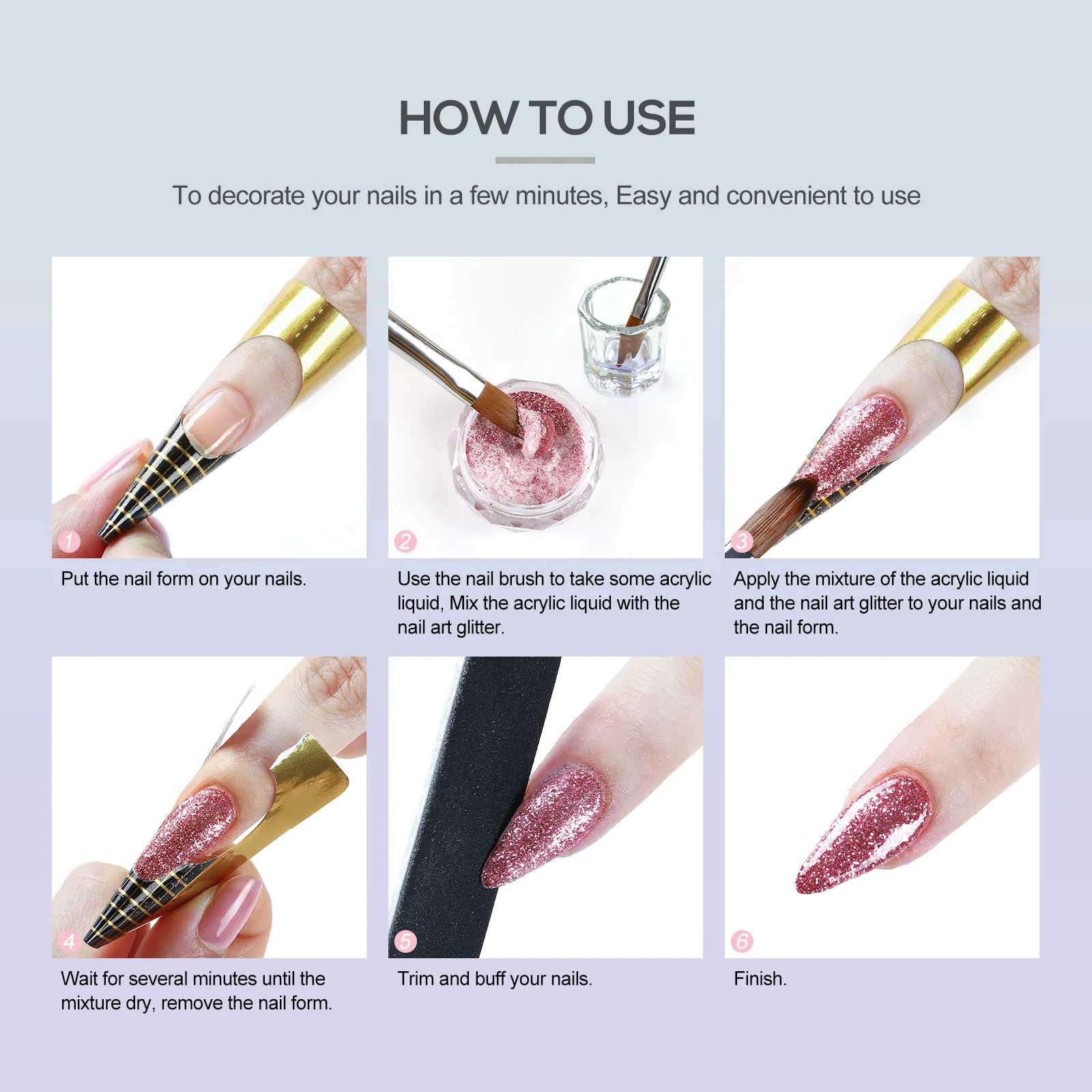 Полный набор для дизайна ногтей, включая акриловые и УФ-ногти. Посылка с акриловой жидкостью и стеклянной тарелкой, готова к использованию. Налейте акриловую жидкость в тарелку dappen, используйте ручку для дизайна ногтей, чтобы налить акриловый порошок, а затем налейте в акриловую жидкость.