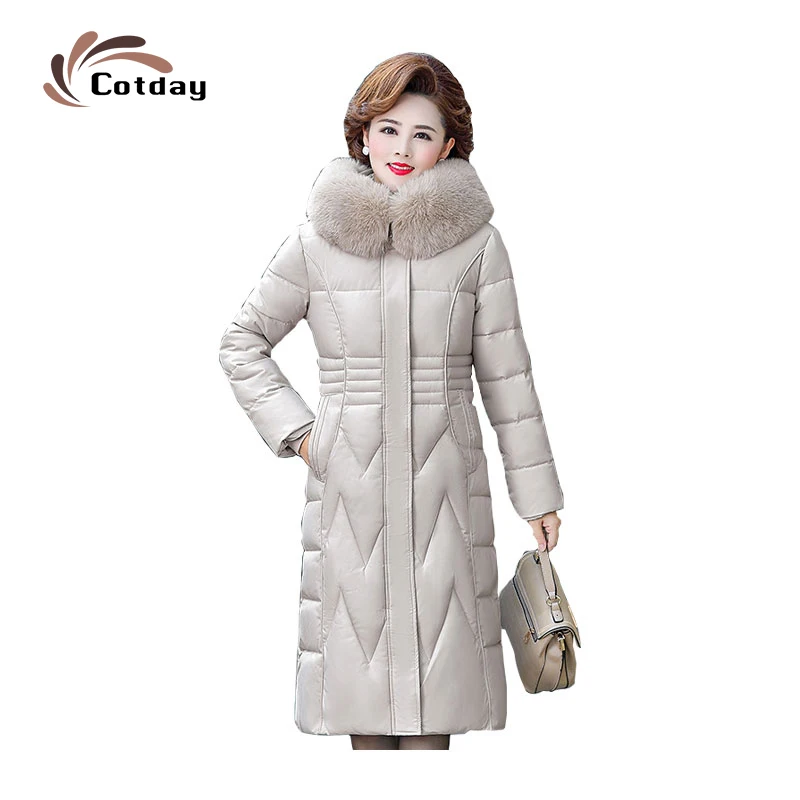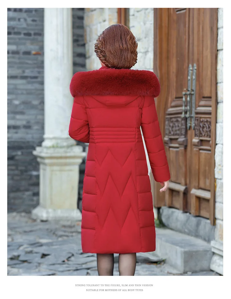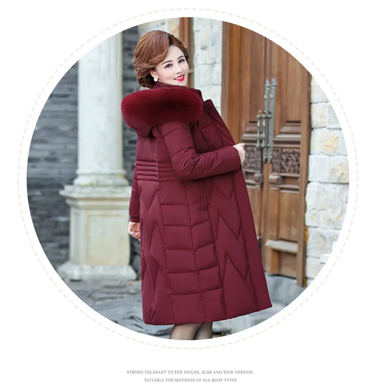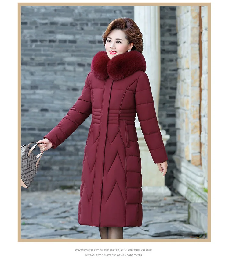 Cotday Длинные Новое красное вино зима большой карман с капюшоном для мамы, ветрозащитная Лыжная куртка толстый меховой воротник негабаритных хлопковое мягкое Женское пальто