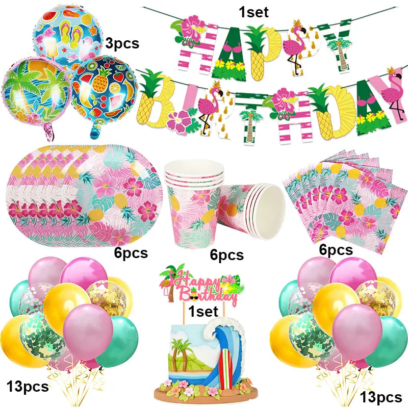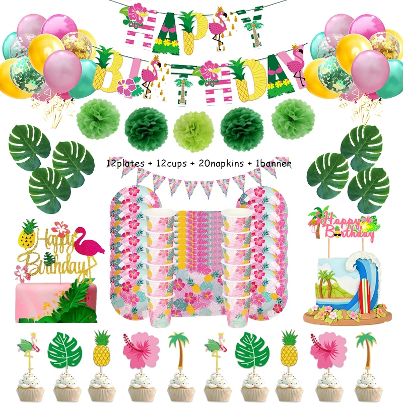 Посуда Luau Aloha одноразовая розовая, гавайский декор для вечерние, Гавайский тропический декор для вечеринки, летний декор для вечевечерние с фламинго