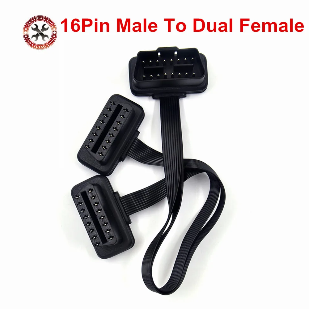 Плоский + тонкий, как лапша OBDII OBD 2 OBD2 16 Pin ELM327 штекер-Двойной Женский Y-разветвитель, удлинитель локтя, диагностический кабель