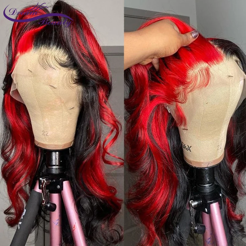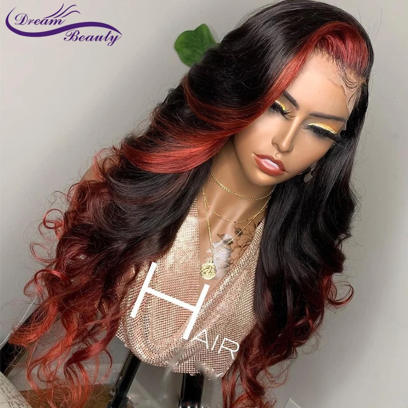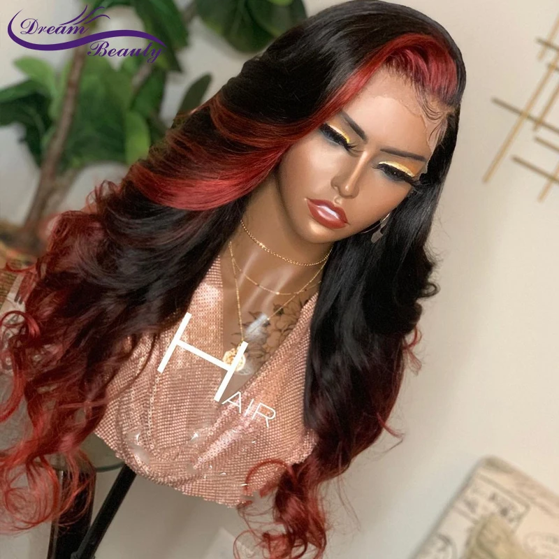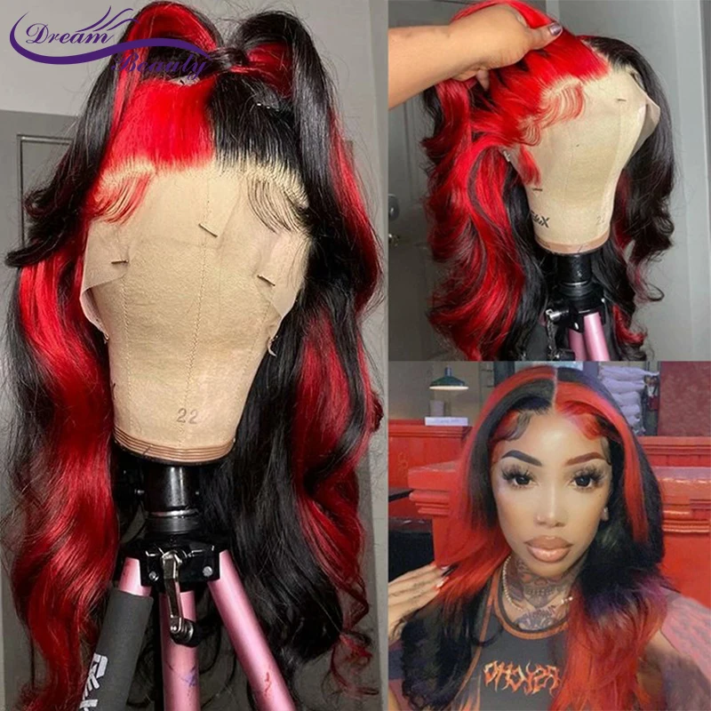 Омбре хайлайтер красные цветные человеческие волосы Wigs13X4 кружев...