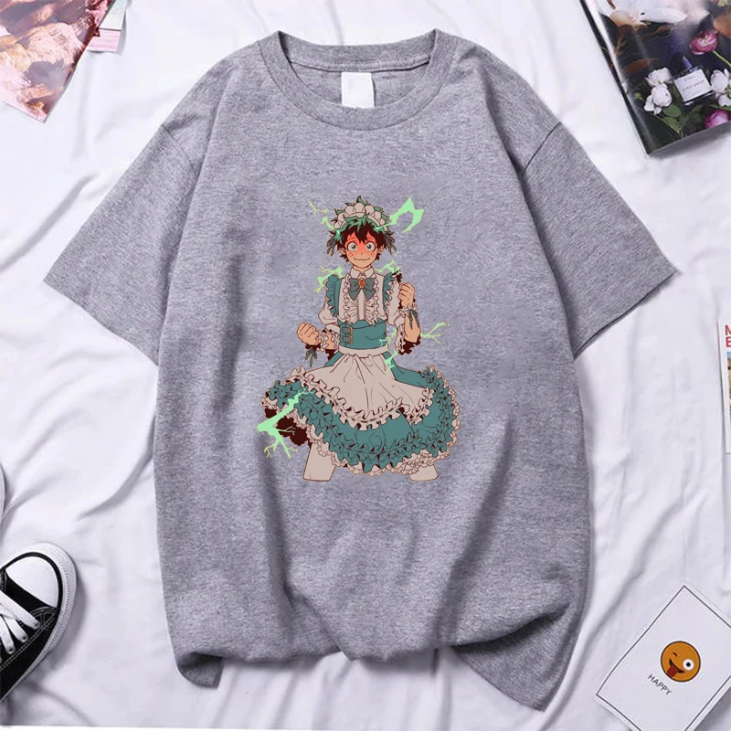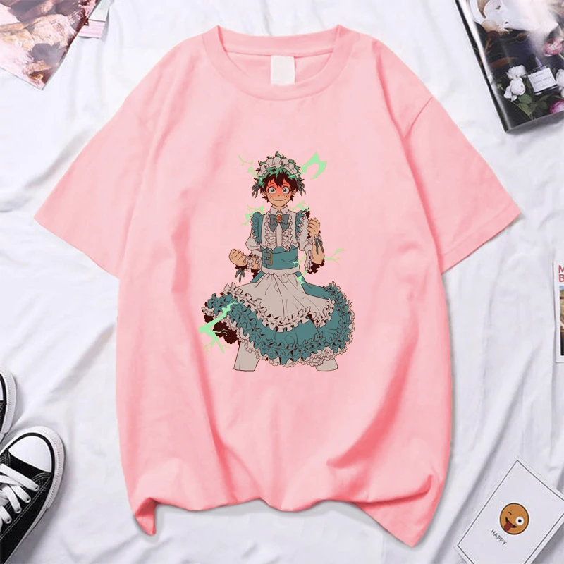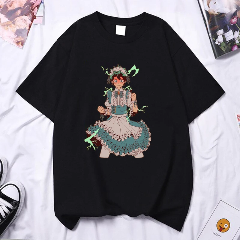 Аниме топы моя геройская академия, милая мидория изюку, костюм горничной, милые футболки с принтом, футболки большого размера в стиле Харадзюку, одежда для манги