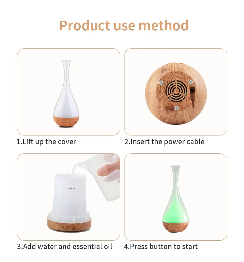 Этот продукт подходит для: дома, офиса, спа или закрытого помещения с использованием кондиционера, отопления, продукт может улучшить проблему сушки воздуха, использовать его с эфирным маслом, эффект будет лучше, воздух ароматный и влажный, он позволит телу и коже чувствовать себя более комфортно. Он может избежать всех видов дискомфорта, вызванных сухим воздухом.