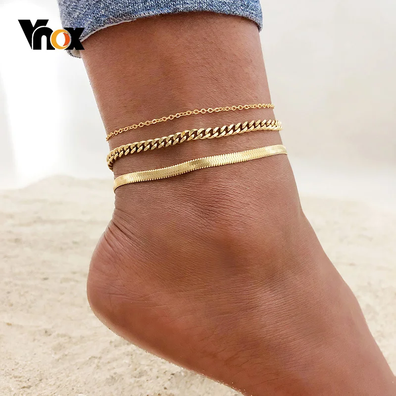 Женские богемные браслеты Vnox из нержавеющей стали, 2-3 шт.комплект, элегантный ножный браслет на ногу, пляжные праздничные ювелирные изделия, регулируемая длина