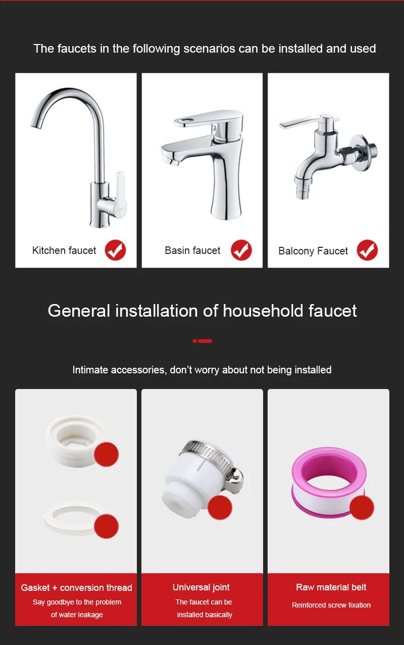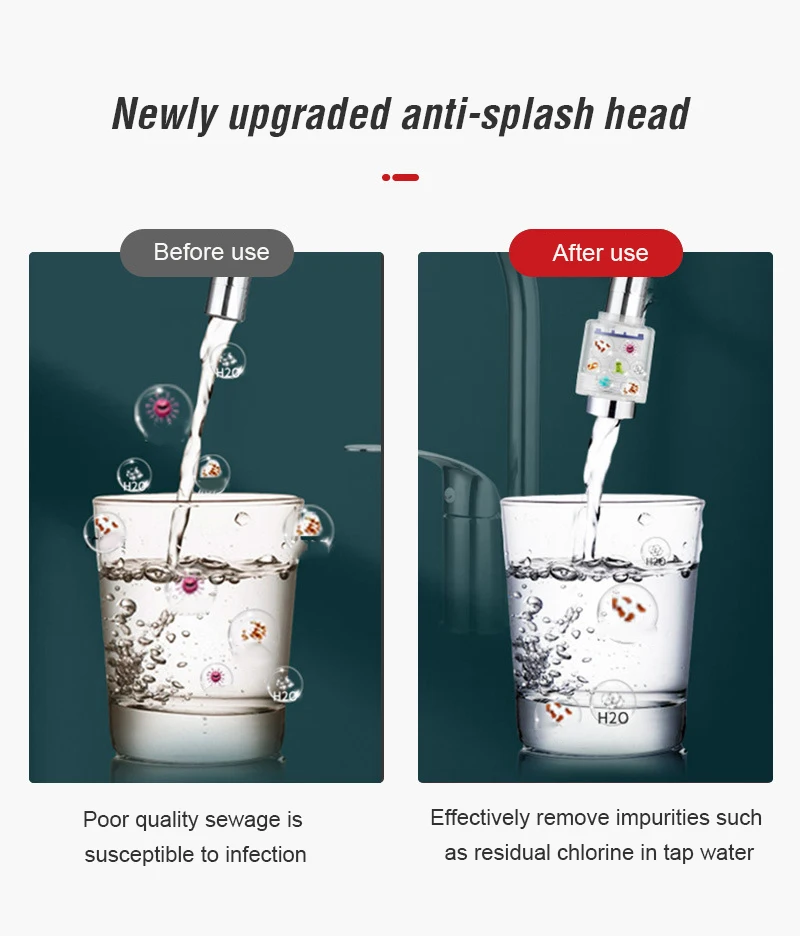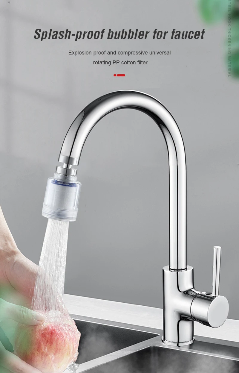 Описание товара Подходит для смесителей диаметром 15 ~ 24 мм. Характеристики продукта 1. Эффективно очищает воду с помощью фильтра. Полипропиленовый хлопковый элемент и шарики сульфита кальция могут удалить остаточный хлор. Удаление ржавчины, песка и других загрязнений. 2. Функция давления и функция фильтрации Он может эффективно увеличивать давление воды, мощно смывать и предотвращать разбрызгивание, а также экономить воду. 3. Можно поворачивать на 360 градусов, промыв без тупиков. 4. Фильтрующий элемент можно заменить. При использовании в течение определенного периода времени фильтрующий элемент пожелтеет и чернеет, пожалуйста, своевременно замените его.