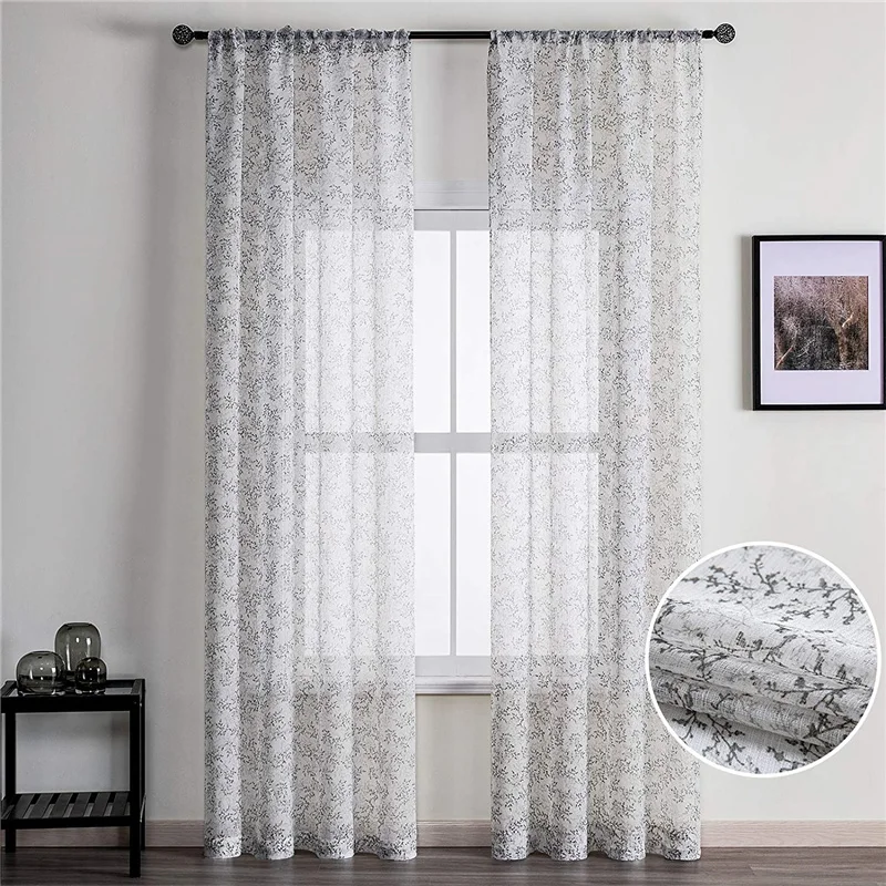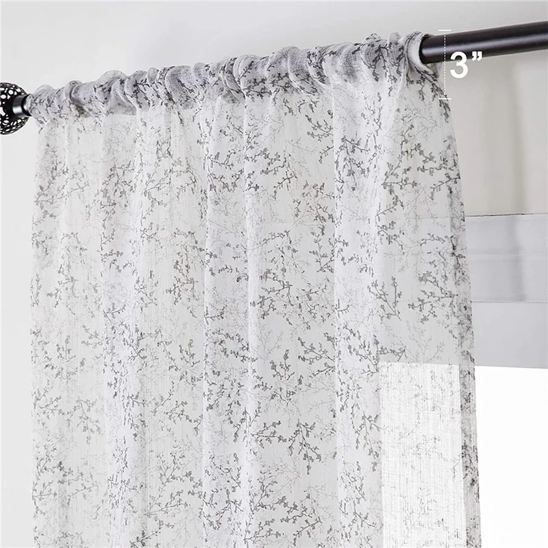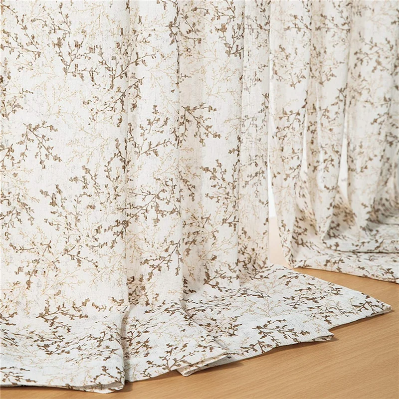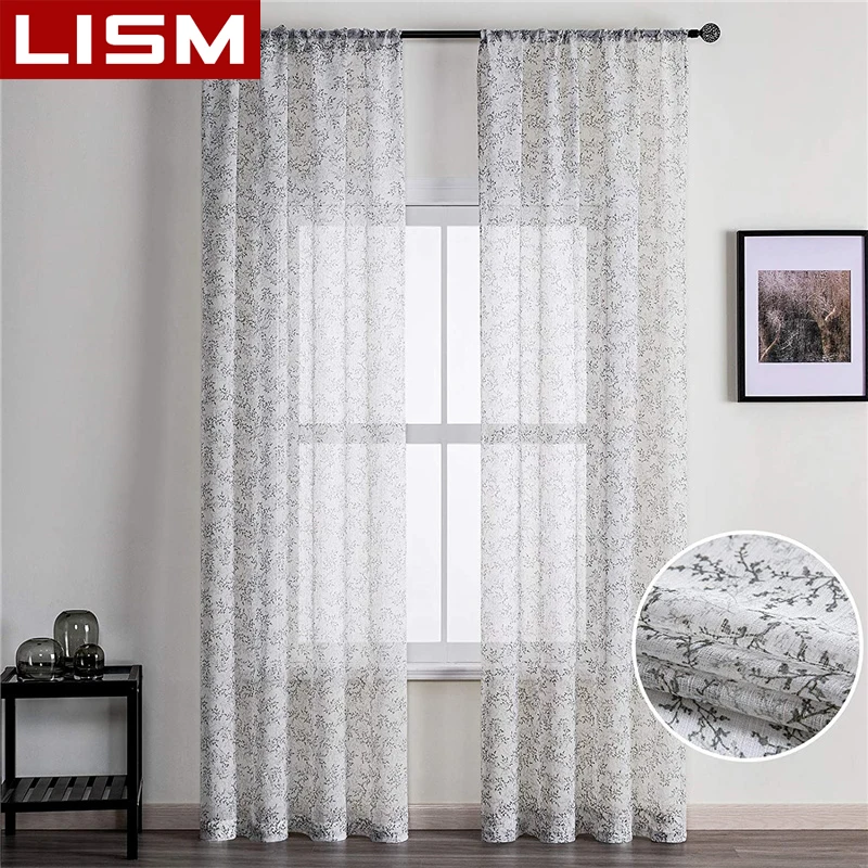 Тонкие шторы LISM, для спальни, гостиной, тюль, для кухни, льняная текстурированная штора с принтом в виде ветвей дерева, серого цвета icon star icon star icon star icon star icon star