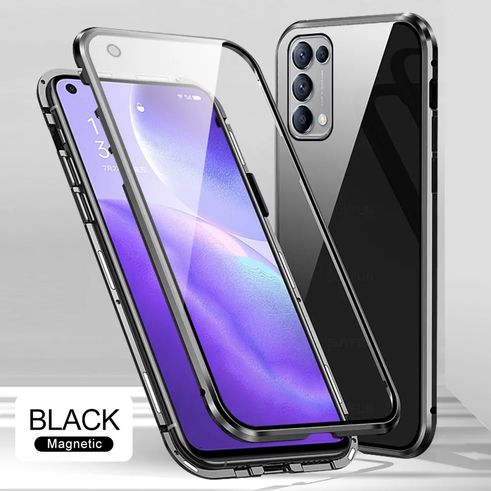 Магнитный флип-чехол Reno5 4G, чехол для телефона Oppo Reno 5 5G 5K, двусторонний чехол из закаленного стекла