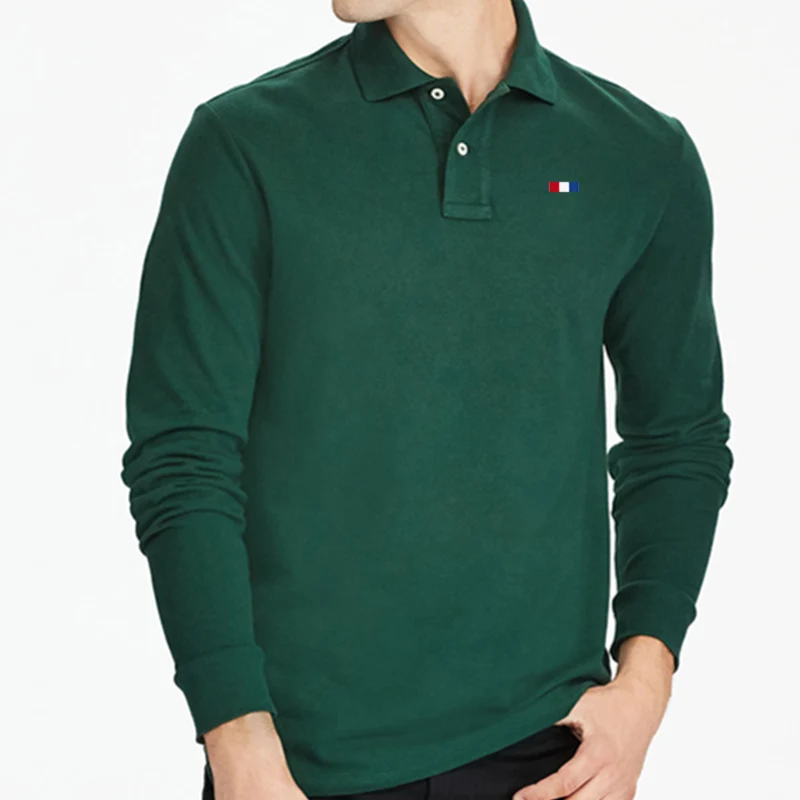 Рубашка-поло мужская, из 100% хлопка, с длинным рукавом, S-5XL