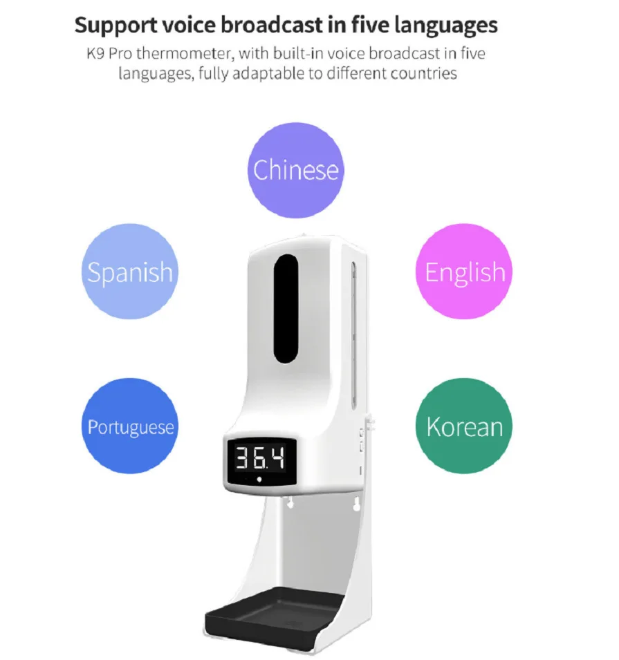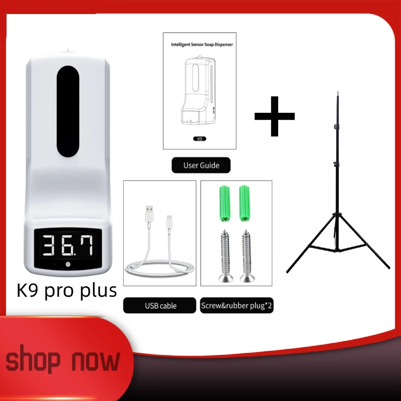 Цифровой ИК-термометр K9 Pro Plus, настенный Бесконтактный автоматический диспенсер для мыла, 210 мл, со штативом 1200 см