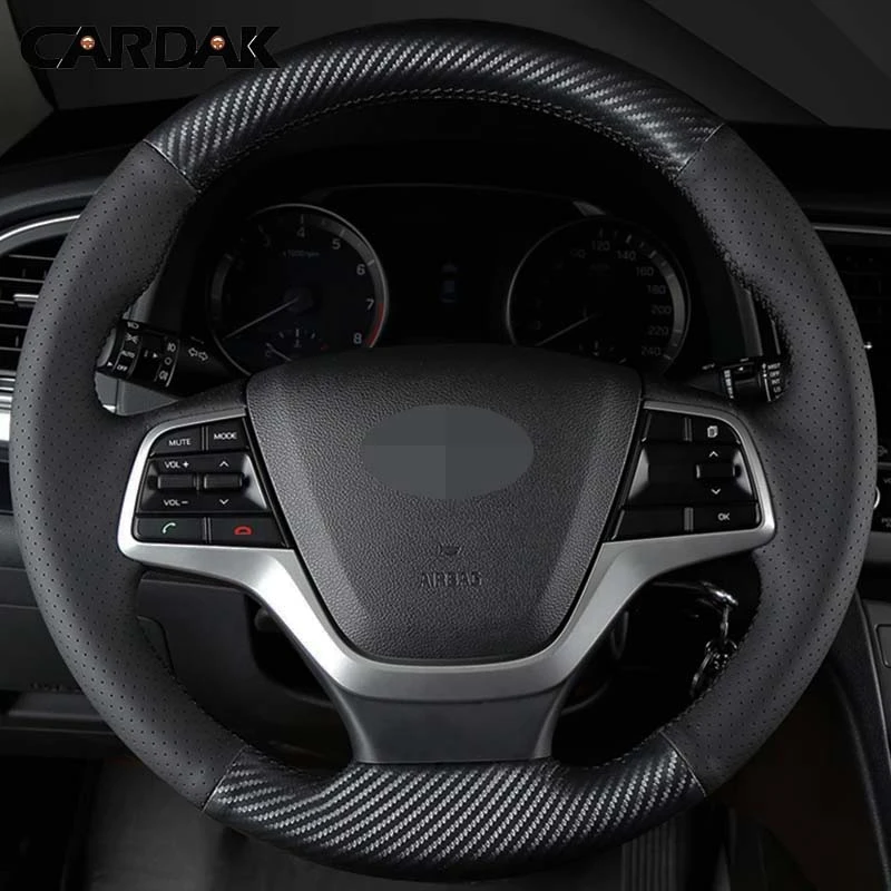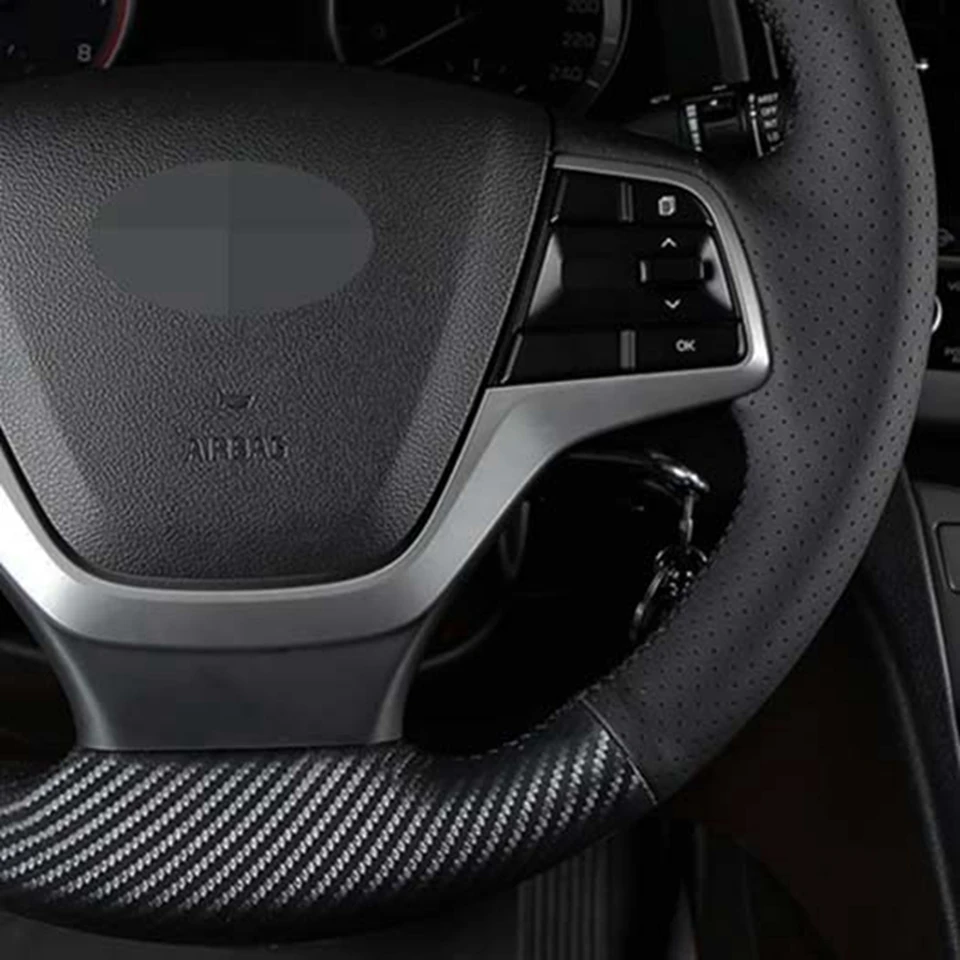 Чехлы рулевого колеса автомобиля мягкой черной кожи выхлопной трубы из углеродного волокна для Hyundai Elantra 4 2016 2017 2018 Solaris 2017 Accent 2018