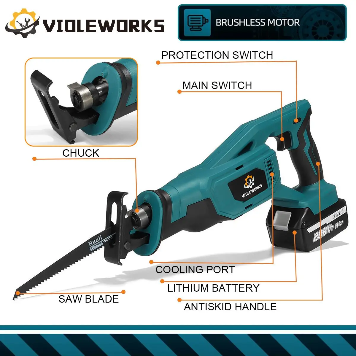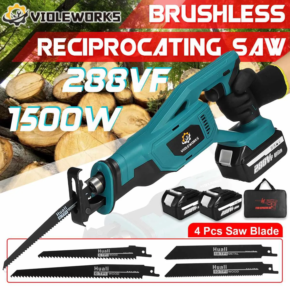Беспроводная сабельная пила, электрическая пила 1500 Вт 288 в с 2 аккумуляторами, инструмент для резки металла и дерева, для батареи Makita 18 в