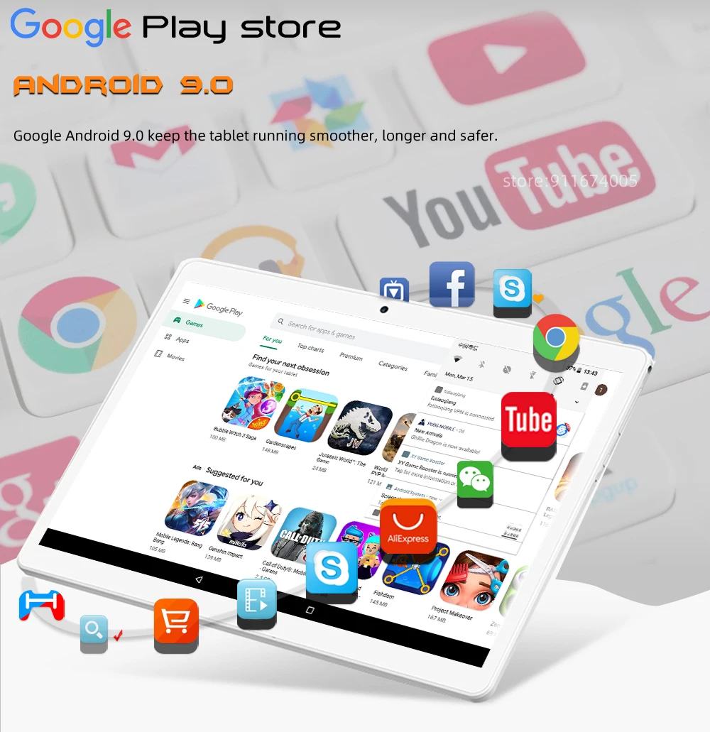 Оригинальный планшет 10,1 дюймов, 4G LTE FDD, Android 9,0, Восьмиядерный процессор, 6 + 32 ГБ, 1280x800 IPS, Google Store, Bluetooth, Android 9, планшеты с вызовами