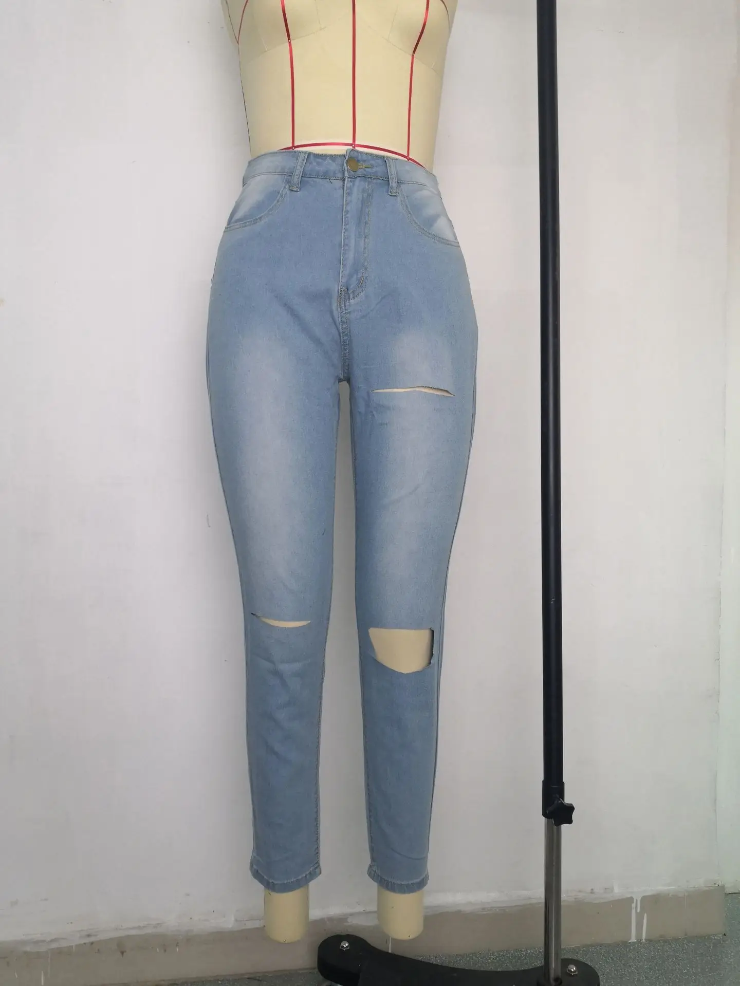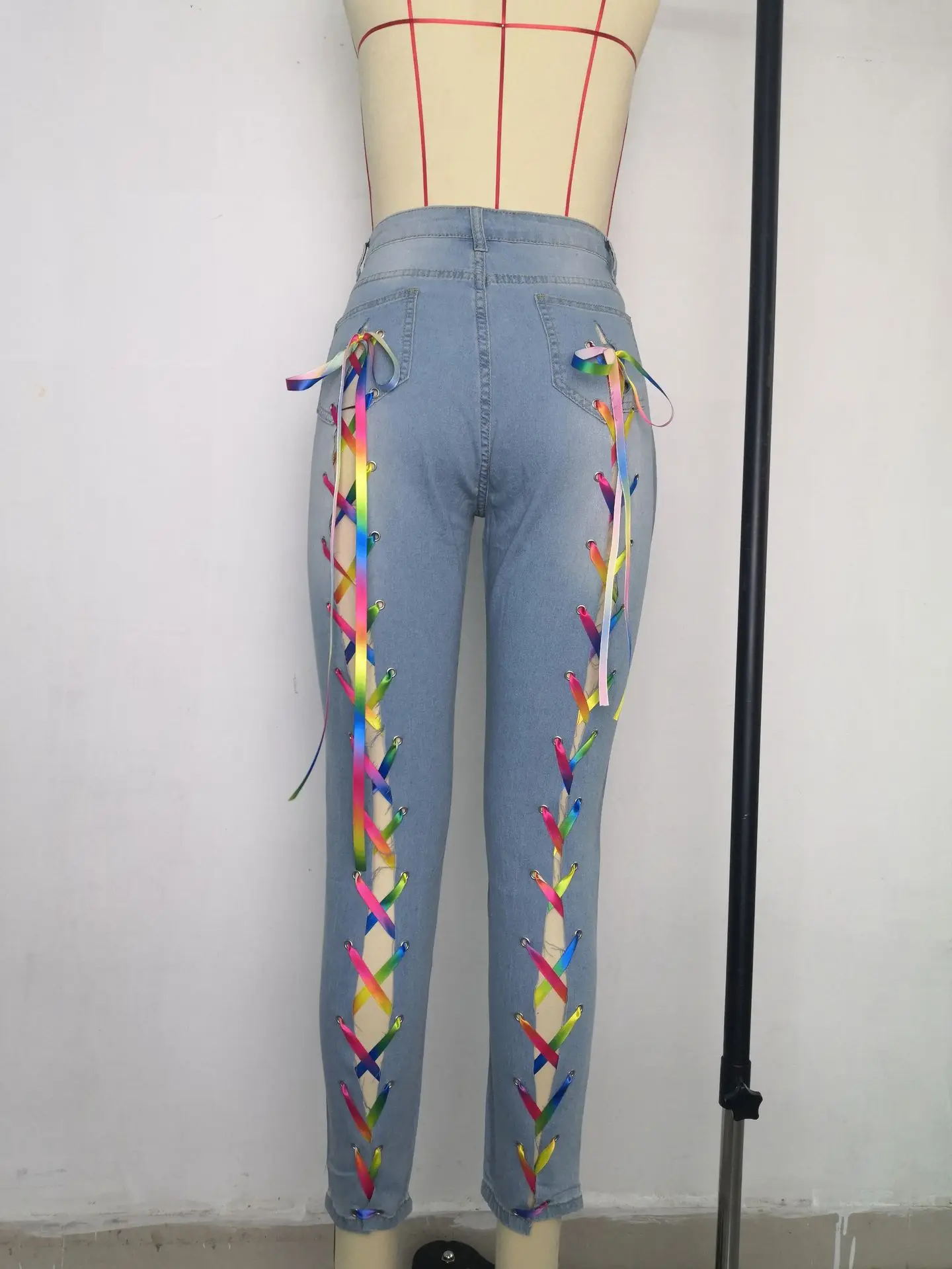 Женские джинсовые брюки-карандаш, рваные брюки с высокой талией и дырками, модные уличные джинсы с перекрестной шнуровкой, модель 5XL, 2021