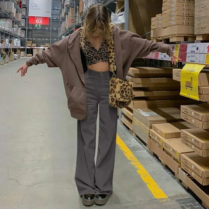 Винтажные Вельветовые женские мешковатые штаны в стиле Харадзюку, коричневые широкие брюки y2k с высокой талией, лидер продаж 2021