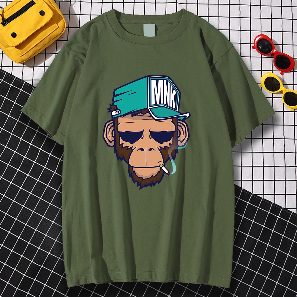 Футболка Мужская дышащая с круглым вырезом, модная винтажная рубашка с длинным рукавом, с принтом обезьянки