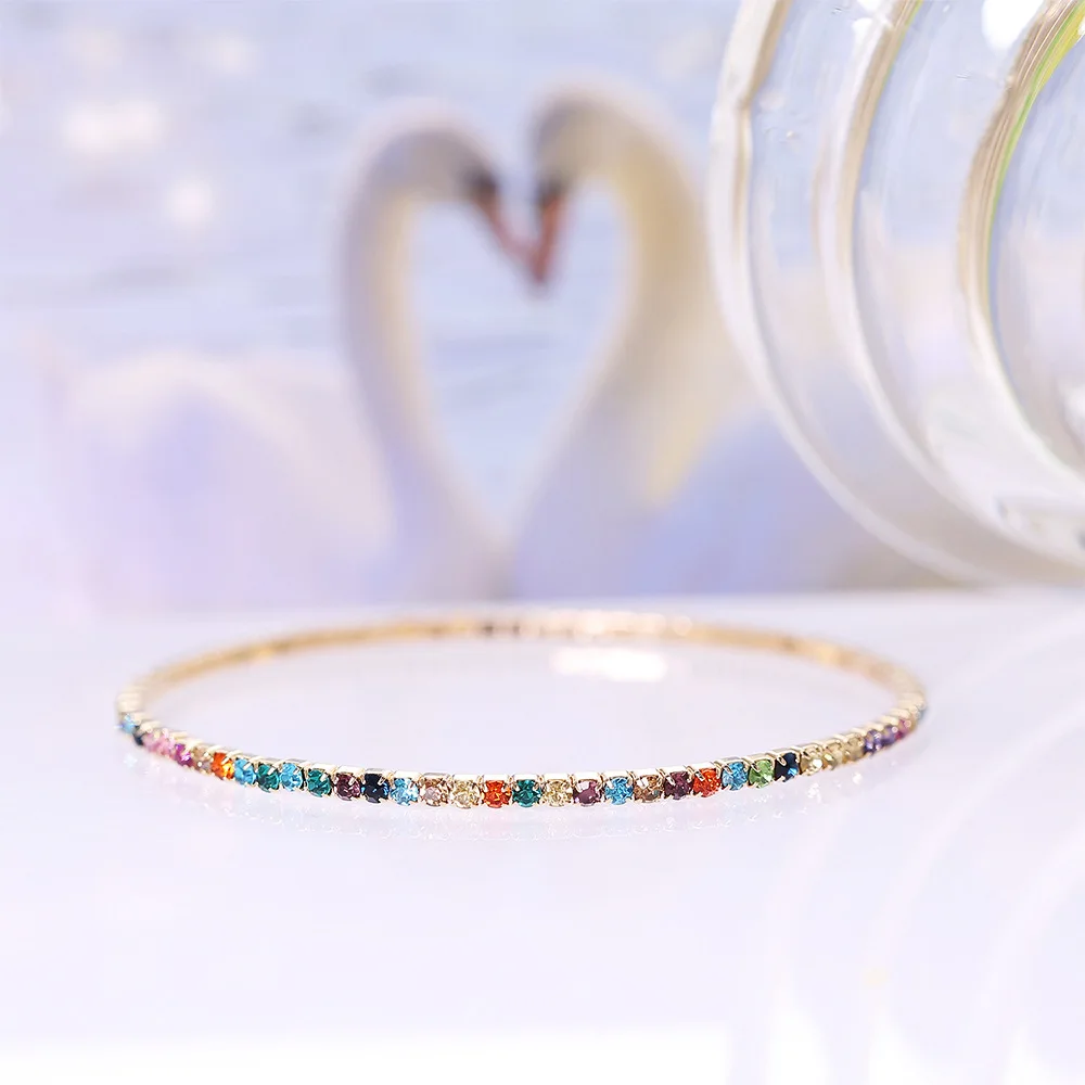 Разноцветный браслет для женщин, циркониевые ювелирные изделия с камнями, случайный цвет, на свадьбу, Рождество, модные ювелирные изделия