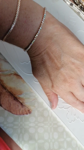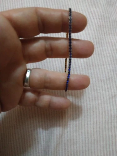 Très joli bracelet , petit tour de poignet donc impeccable à porter sans avoir peur de le perdre ! A éviter de toucher l’eau avec car je pense que la qualité est assez légère . Je vais en commander d’autre, combiné à de différentes formes, ça donne un bel effet . Reçu en 15 jours.