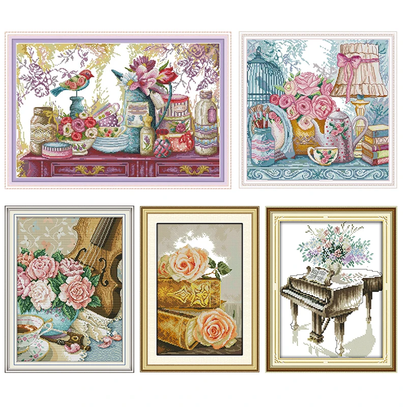 Наборы для вышивки крестом Joy Sunday цветы пейзаж штампованная печ...