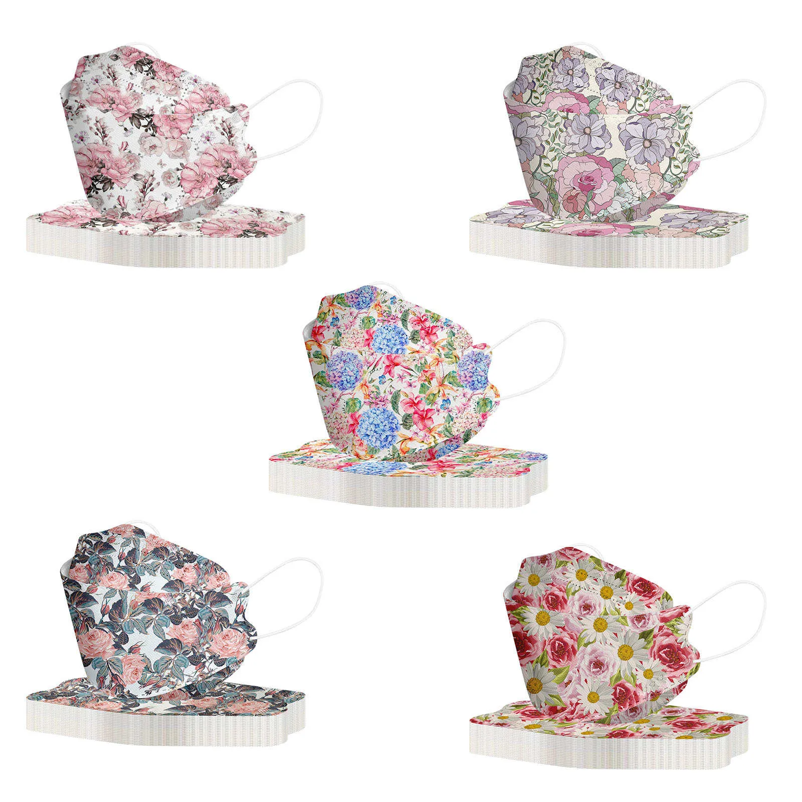 5 шт. маски для лица с цветочным принтом для взрослых