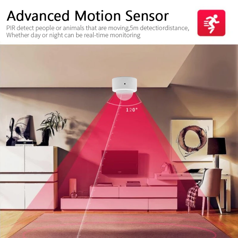 【Advanced Motion Sensor】PIR обнаруживает тело человека или животных, которые движутся, угол обнаружения 120 °, расстояние обнаружения 5 м, может достигать мониторинга в реальном времени днем или ночью.