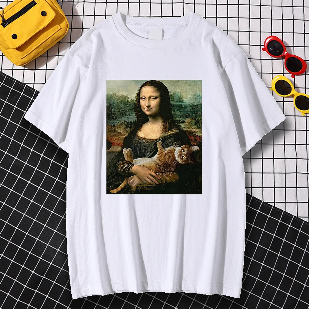 Мужская футболка с принтом Кот нюхает владельца, свободные топы с к...