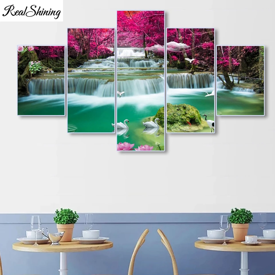 Мульти-Панель алмазов картина в комплекте Новинка водопад Лебеди со стразами с вышивкой на каблуке 5 1 предмет высокое качество головоломки мозаика, F1113