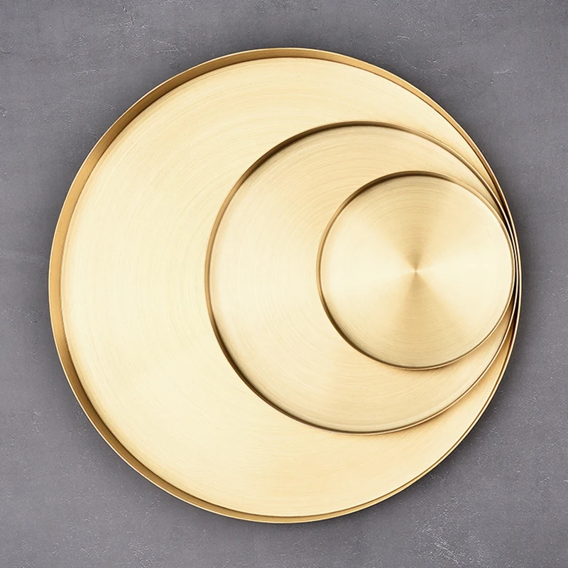 Золотой круглый поднос, кухонная посуда, Сервировочная тарелка для макияжа, органайзер для ювелирных изделий и косметики, многофункциональный органайзер из нержавеющей стали
