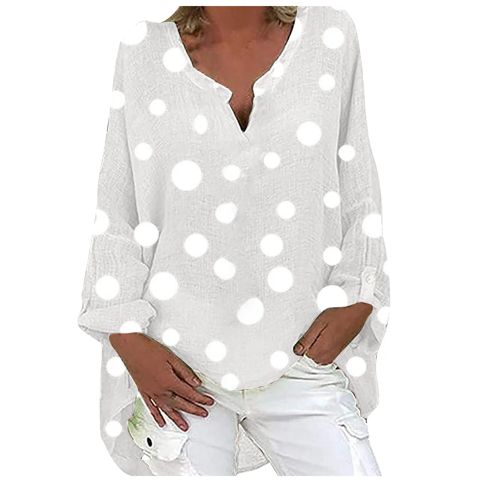 Женская Повседневная Свободная рубашка в горошек с длинным рукавом и v-образным вырезом размера плюс