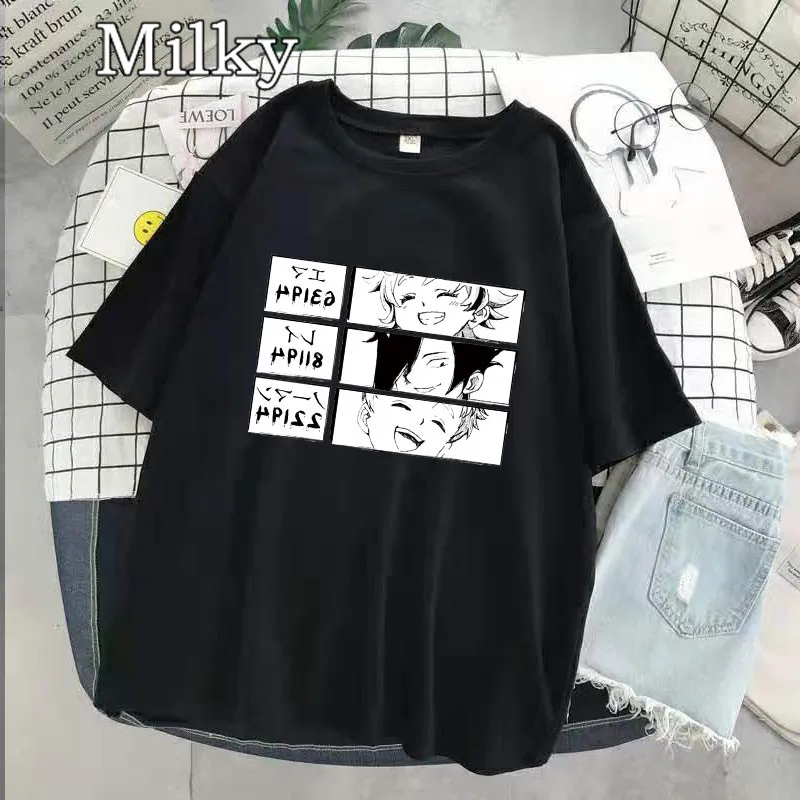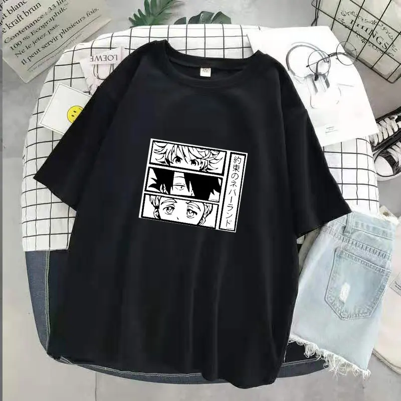 Лидер продаж, футболка в японском стиле с рисунком аниме обещания неверланда, женская футболка в стиле Харадзюку, уличная одежда, футболка с коротким рукавом и графическим рисунком, свободные футболки, топы