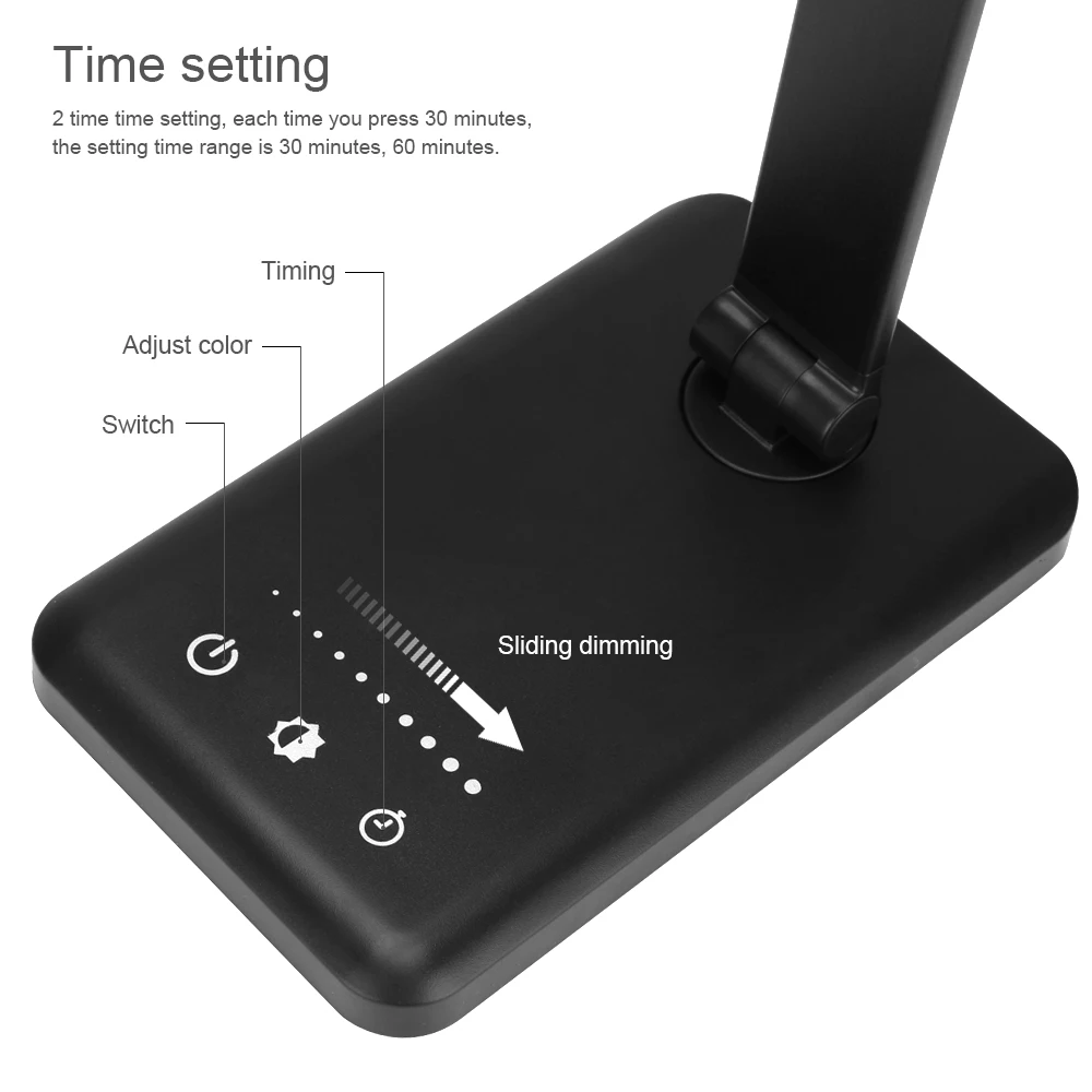 Настольная лампа с плавной регулировкой яркости, складной вращающийся светодиодный светильник с сенсорным выключателем, USB-порт для зарядки, настольная лампа для чтения с таймером, 5 в постоянного тока