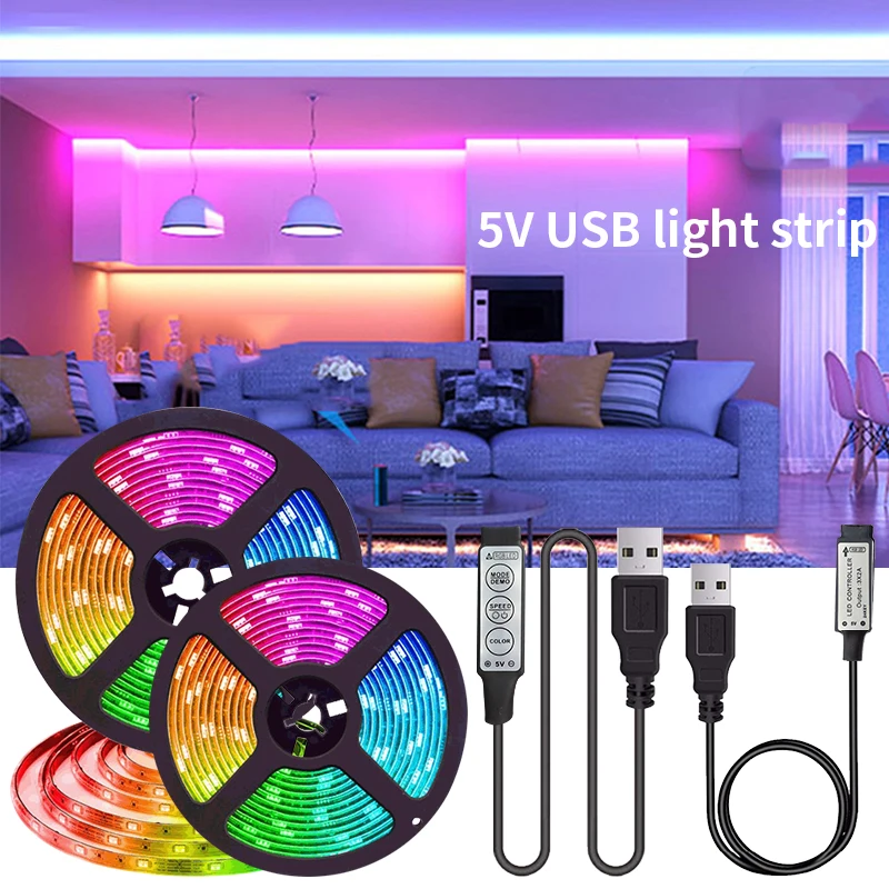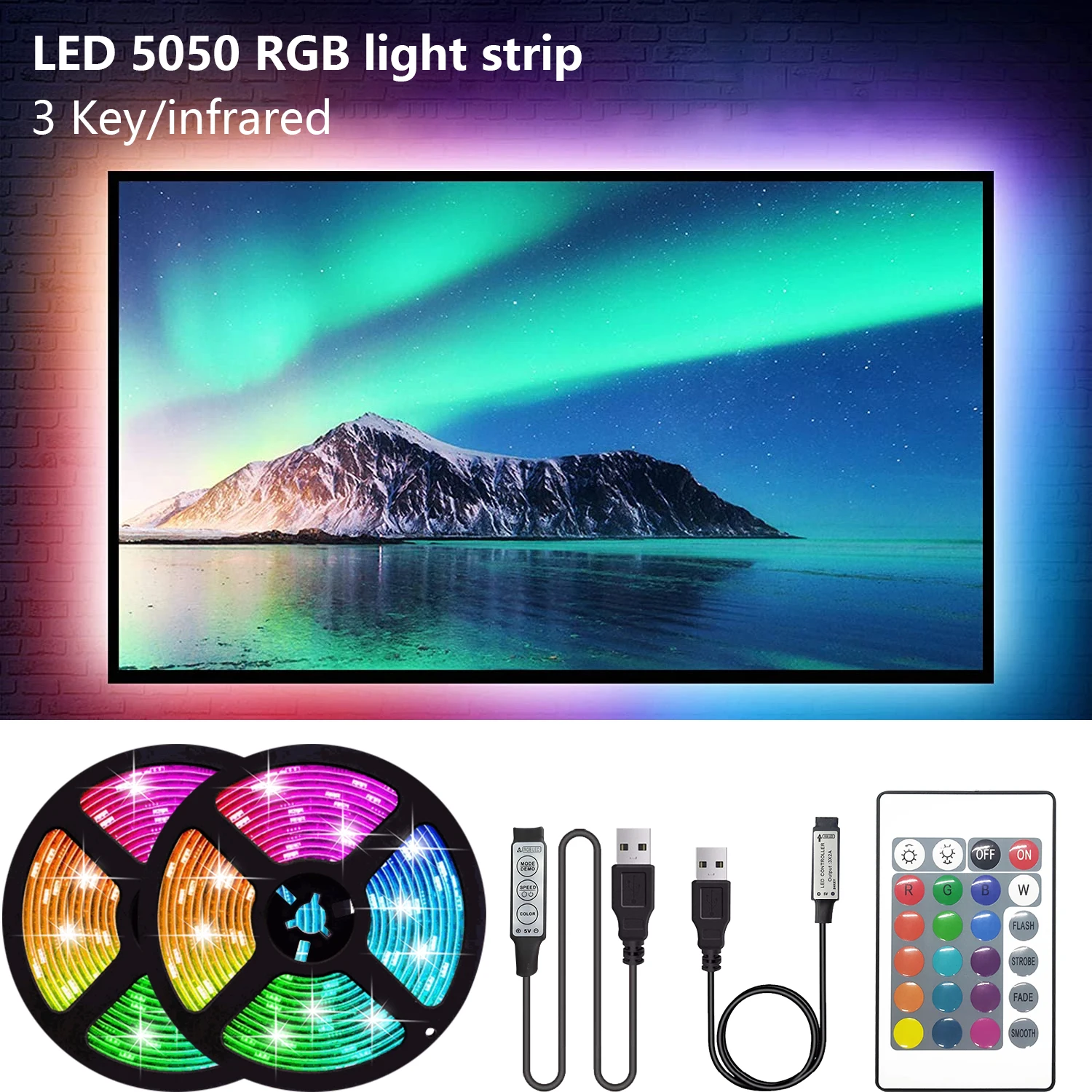 Светодиодная лента RGB 5050 с USB-разъемом для ТВ, гибсветодиодный Светодиодная лампа с поддержкой Bluetooth для подсветки экрана телевизора, 1 м, 2 м, 3 м, 4 м, 5 м