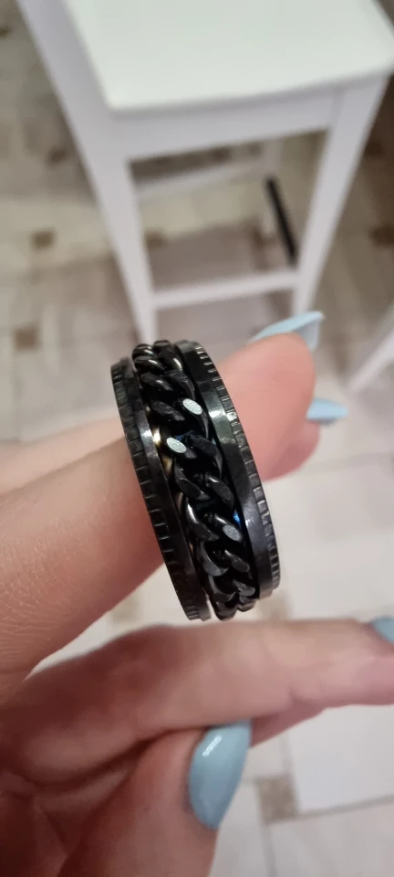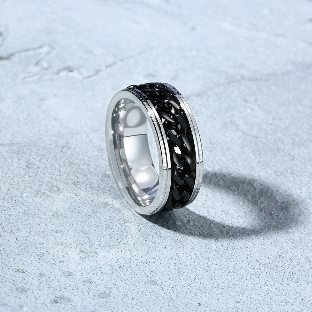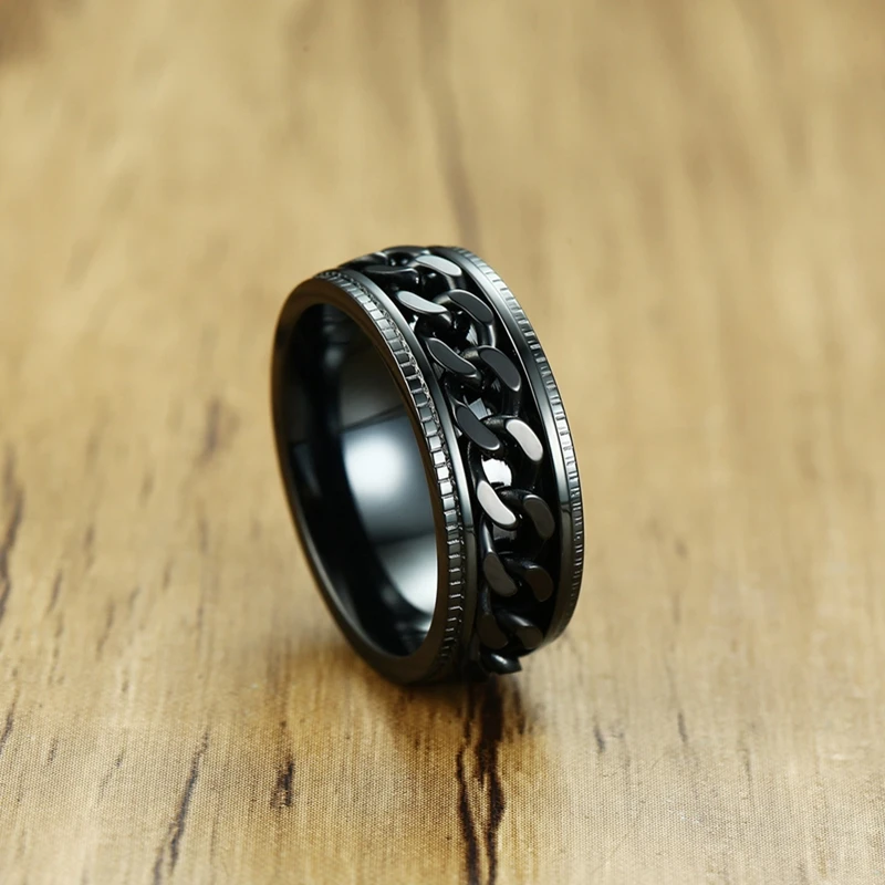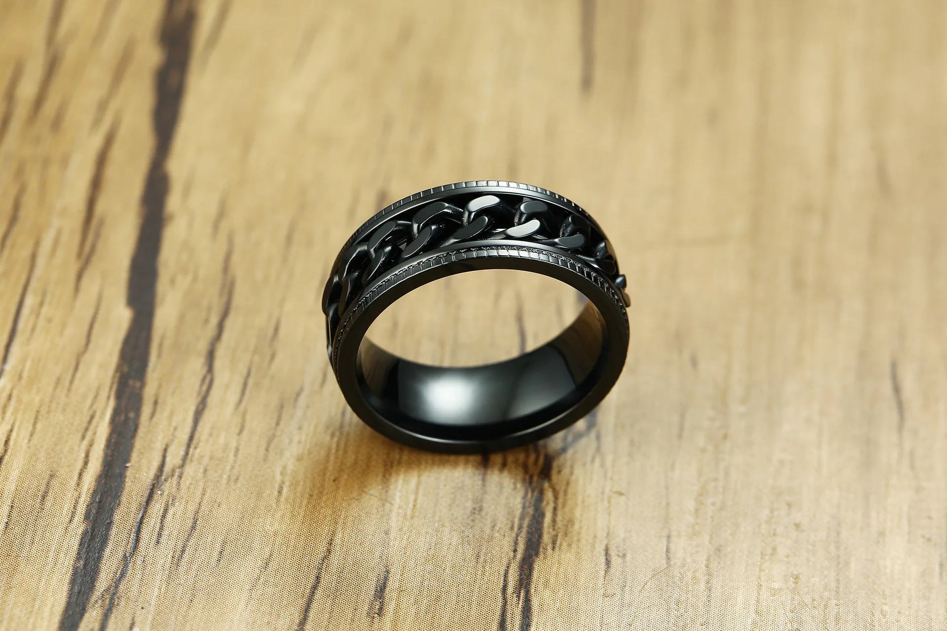 Кольцо мужское из нержавеющей стали в стиле панк, Крутое черное прядильная цепь с текстурой шины, вращающиеся звенья, 8 мм, Подарочная бижутерия
